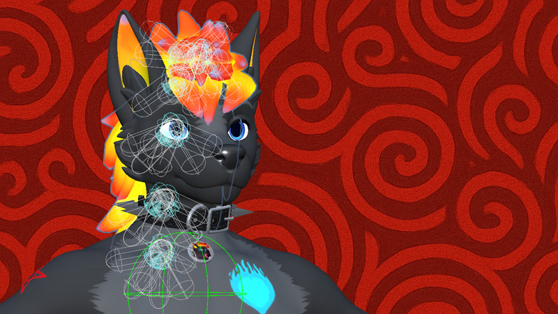 FireWolf wanted additional mane physbones, lighting improvements for Android, custom spikes added to his collar, texture tweaks for his hair, and a fix to the dark hearts found in his loving eyes. No problemo.