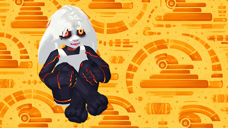 Karasu came with a previous commission that didn’t quite have enough detail. He provided a reference and Darque created a new texture with normal details, animated elements, a custom sitting pose, and shiny parts to match.